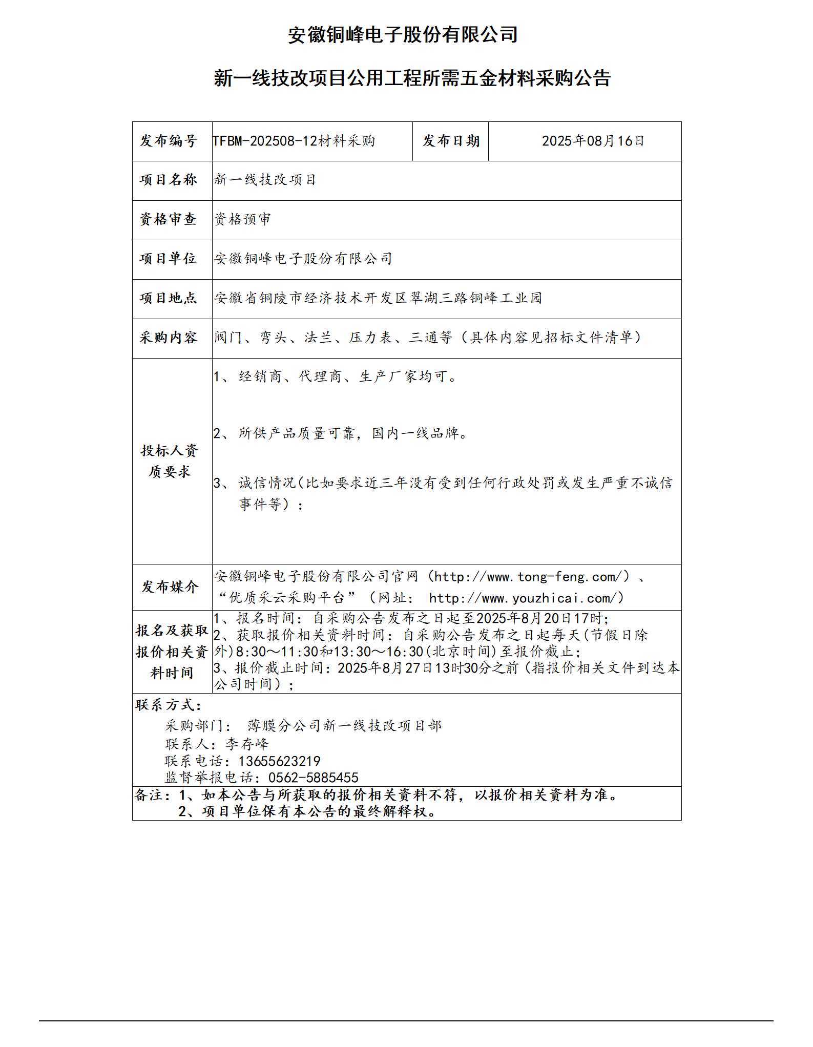安徽銅峰電子股份有限公司 (新一線(xiàn)項(xiàng)目五金材料采購(gòu))_01