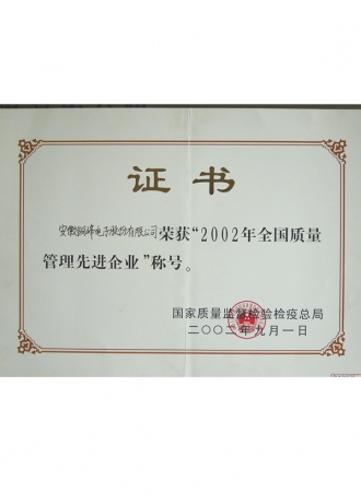 首屆安徽省質(zhì)量創(chuàng)新技能大賽二等獎