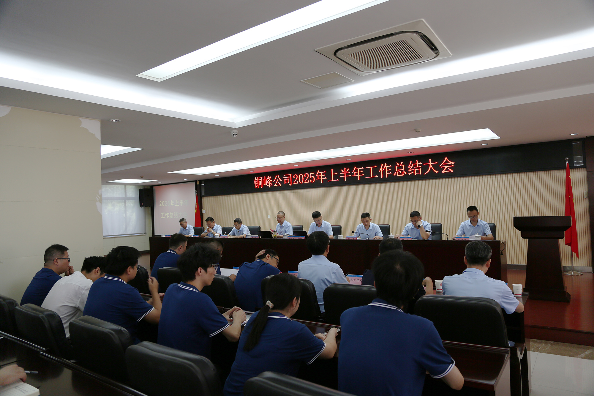 8月8日下午,公司在辦公樓二樓職教室隆重召開(kāi)2025年上半年工作總結(jié)大會(huì)。公司黨政領(lǐng)導(dǎo)班子成員、各生產(chǎn)經(jīng)營(yíng)單位車(chē)間主任和職能部門(mén)主管級(jí)以上人員、部分職工代表和新進(jìn)大學(xué)生代表等參加會(huì)議。會(huì)議認(rèn)真復(fù)盤(pán)上半年運(yùn)營(yíng)成果,深入分析當(dāng)前經(jīng)營(yíng)形勢(shì),精心謀劃下半年重點(diǎn)工作。公司黨委書(shū)記、董事長(zhǎng)黃明強(qiáng)出席會(huì)議并作總結(jié)講話(huà),對(duì)公司上半年工作進(jìn)行總體分析,對(duì)下半年工作提出要求。總經(jīng)理鮑俊華主持會(huì)議,并對(duì)公司各單位和部門(mén)的具體工作進(jìn)行點(diǎn)評(píng)。公司各生產(chǎn)單位和相關(guān)職能部門(mén)分別匯報(bào)了上半年主要工作及下半年工作計(jì)劃。