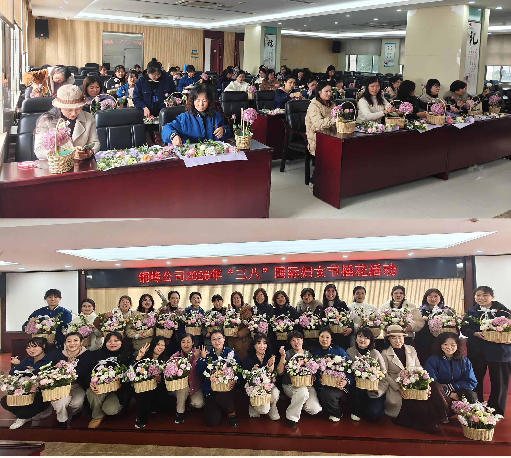 “妙手生花”插花活動(dòng)則將節(jié)日氛圍推向高潮。活動(dòng)現(xiàn)場花香四溢,專業(yè)花藝?yán)蠋煆幕ú淖R(shí)別、色彩搭配、造型設(shè)計(jì)等方面進(jìn)行細(xì)致講解與現(xiàn)場指導(dǎo)。女職工們化身花藝師,發(fā)揮創(chuàng)意、巧手制作,將繽紛花材搭配組合,一盆盆春意盎然的插花作品相繼成型,或清新雅致,或熱情奔放,各有韻味。大家在動(dòng)手創(chuàng)作的過程中,不僅學(xué)習(xí)了花藝技巧,更在發(fā)現(xiàn)美、創(chuàng)造美的過程中愉悅身心,舒緩了工作與生活的壓力。